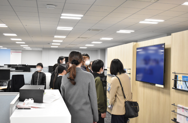 当社の業務フロアを見学。広々とした執務室や設備に、子どもたちが目を輝かせながら興味深く見学する姿が見られました。