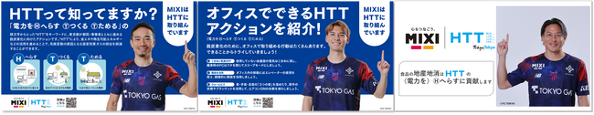 オフィス内では、HTTに関するリーフレットを設置するほか、デジタルサイネージを掲出するなど、従業員がより環境意識を高められるよう啓発活動を開始しました。クリエイティブには当社グループのプロサッカークラブ「FC東京」に所属する長友佑都選手や佐藤恵允選手などを起用しています。