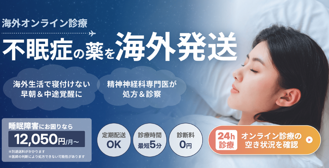 海外に住む日本人向けのオンライン診療サービス「御用聞きドクター」(運営:おうえケアとわクリニック)は、不眠症に悩む海外在住の日本人を対象に、ゾルピデム・デエビゴ・マイスリー(ゾルピデムの先発品)を含む不眠症薬セットの処方・海外発送サービスを提供しております。診察料・手数料は0円、薬代と送料のみで月12,050円~ご利用いただけます。