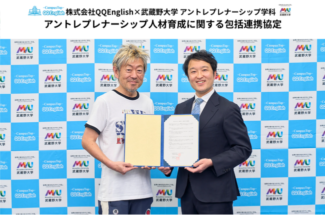 株式会社QQ English(本社:東京都新宿区、代表取締役:藤岡頼光、以下QQEnglish)は、武蔵野大学 アントレプレナーシップ学科(所在地:東京都西東京市、学部長:伊藤羊一、以下「EMC」)と包括連携協定を締結しました。