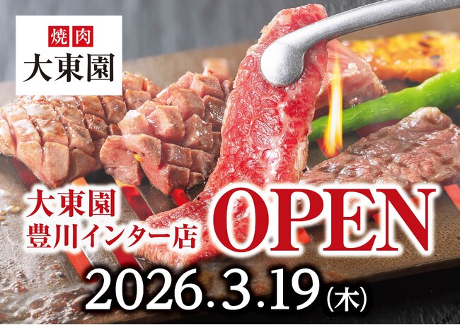 株式会社甲羅(本社:愛知県豊橋市、代表取締役社長:沼澤 裕)が展開する焼肉「大東園」は、2026年3月19日(木)に「大東園豊川インター店」(愛知県豊川市牧野町)をオープンいたします。