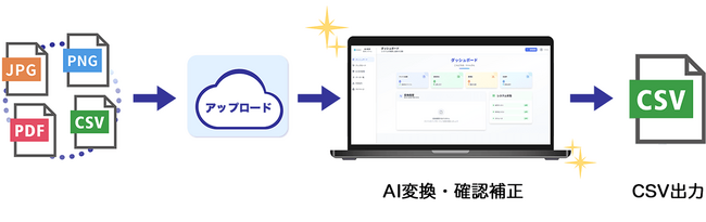 [画像2: https://prcdn.freetls.fastly.net/release_image/158953/6/158953-6-66d92dfa32f16f092e0c832a470d6455-1198x377.png?width=536&quality=85%2C75&format=jpeg&auto=webp&fit=bounds&bg-color=fff ]紙・PDF発注書をアップロードするだけで、AIが自動変換・確認・CSV出力