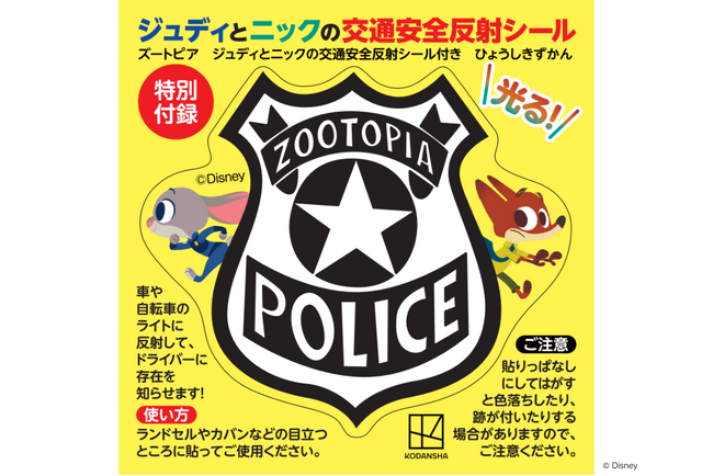 【特別付録】ディズニー映画『ズートピア』のオリジナルシールがついてくる! 親子で学べる『ズートピア 特別付録ジュディとニックの交通安全反射シール付き ひょうしきずかん』が3月発売!