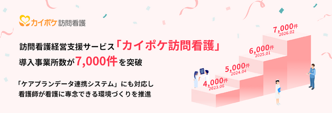 訪問看護経営支援サービス「カイポケ訪問看護」導入事業所数が7,000件を突破。全国の訪問看護ステーションの3分の1以上が導入