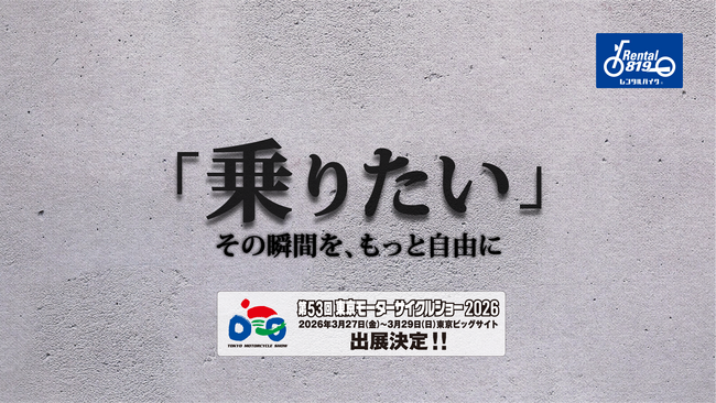 株式会社キズキレンタルサービス(本社:埼玉県川口市)が展開する全国レンタルバイクサービス「レンタル819」は、第53回 東京モーターサイクルショー2026(会期:2026年3月27日(金)~29日(日)/会場:東京ビッグサイト 西ホール)に出展します。