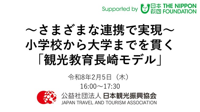 日本観光振興協会(東京都港区 会長 菰田 正信(三井不動産(株)代表取締役会長))は、長崎市及び長崎県での観光教育の取組を紹介するオンラインセミナーを令和8年2月5日(木)に開催いたしました。