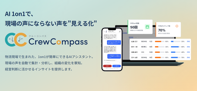 物流業のダイセーグループでDXコンサルティングを行う株式会社DX研究所(本社:東京、代表取締役:茂木秀彦)は、現場社員と管理者のコミュニケーションを支援するAI 1on1サービス「CrewCompass(クルーコンパス)」を開発し、グループ内での導入・運用を経て、このたび外部企業向けの提供を開始します。