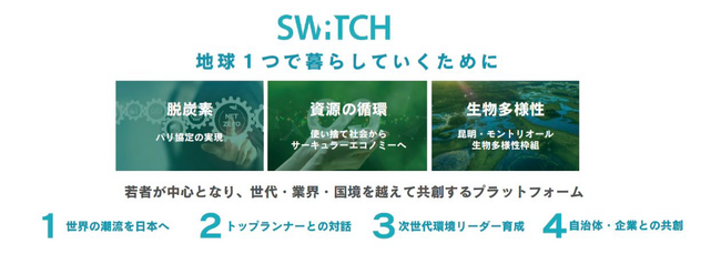 SWiTCH は、2030年のSDGs 達成、2050年のパリ協定の目標達成に向けて、次世代を担う20代の若者たちを中心に、世代・業界・国境を越えた対話と協働を促進していきます。今後は特に、都市部における生態系との共生モデルの構築、環境技術のイノベーション支援、若者による政策提言活動の強化に注力していきます。