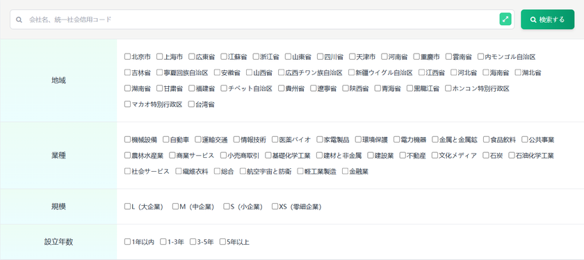 日中製造業の協業ニーズに応えるため、本ツールには8,000社以上の日系製造・貿易企業データを統合しました。中国での事業展開状況、顧客属性、サプライチェーン動向、リソース状況などの包括的な情報を提供し、中国日系企業エコシステムを的確に洞察し、日中の製造リソースを効率的に連携させます。