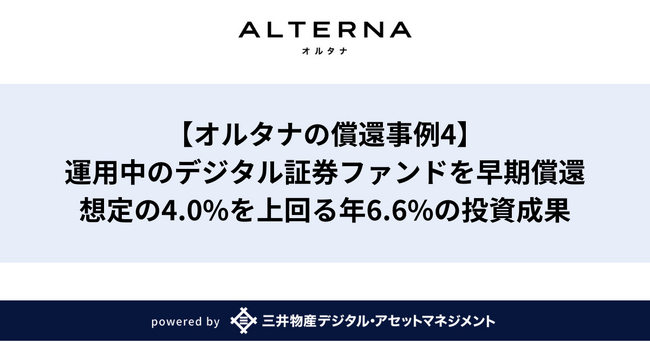 【オルタナの償還事例4】デジタル証券ファンドを早期償還。想定の4.0%を上回る年6.6%の投資成果