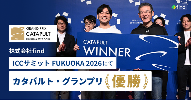 「落とし物クラウドfind」を提供する株式会社find(所在地:東京都港区、代表取締役CEO:高島彬、以下「find」)は、2026年3月2日~5日に開催中の「ICCサミット FUKUOKA 2026」にて、「CATAPULT GRAND PRIX(カタパルト・グランプリ)- 強者が勢揃い -」で優勝したことをお知らせします。
