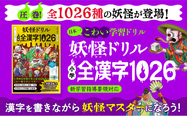ゾクゾク楽しい!なんと全1026種の妖怪たちが登場!一生役に立つ漢字力が「妖怪」で身につく、新感覚の小学学習ドリルを発売!