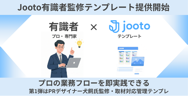 株式会社PR TIMES(本社:東京都港区、代表取締役:山口 拓己、東証プライム・名証プレミア:3922)が提供するタスク・プロジェクト管理ツール「Jooto」(読み:ジョートー)は、各種実務の最前線で活躍する専門家の知見をもとに業務フローをテンプレート化する「有識者監修テンプレート」の提供を2026年3月5日(木)より開始しました。