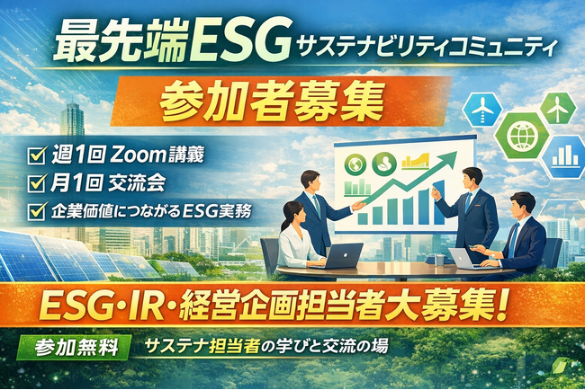 ソーシャルインパクト・リサーチ(代表:熊沢拓)は、企業のサステナビリティ担当者・ESG担当者・経営企画・IR担当者などを対象に「最先端ESGサステナビリティコミュニティ」を再募集します。