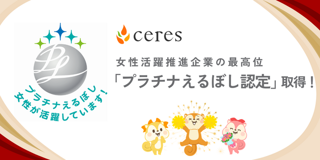 株式会社セレス(本社:東京都渋谷区、代表取締役社長:都木 聡、証券コード:3696、以下セレス)は、女性活躍推進の取り組みが特に優良な企業として、厚生労働大臣より最高ランクの「プラチナえるぼし認定」を取得しましたことをお知らせいたします。3月8日の国連が定める「国際女性デー」を迎えるにあたり、当取得を発表することで、セレスは女性の社会進出や活躍やジェンダー平等の重要性を再認識し、多様な人材が真に輝ける組織づくりに一層取り組んでまいります。