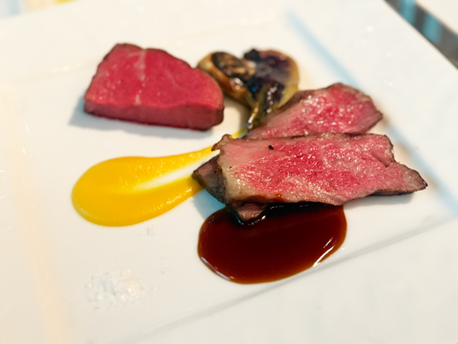 会場では、鹿児島県産和牛を中心に、県産食材をふんだんに使ったイタリアンのフルコースが提供されました。今回の主役は、日本初の個人名ブランド牛として知られる「のざき牛」です。出荷の約7割がA5ランクという高い品質を誇り、国内外のシェフや美食家から信頼を集めています。