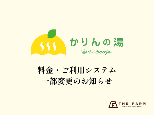 株式会社ザファーム(本社:千葉県香取市、代表取締役:武田泰明、以下、ザファーム)が運営する、農園リゾートTHE FARM内の温浴施設「おふろcafe かりんの湯(以下、かりんの湯)」において、3/9(月)より料金・ご利用システムを一部変更いたします。