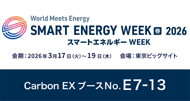 Carbon EX株式会社(本社:東京都港区、代表取締役: 西和田浩平、竹田 峻輔、以下「当社」)は、2026年3月17日から3月19日まで東京ビッグサイトで開催されるエネルギー総合展示会「SMART ENERGY WEEK 春」に出展します。