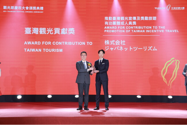 株式会社ジャパネットホールディングス (本社:長崎県佐世保市/代表取締役社長 兼 CEO:高田旭人)のグループ会社で、旅行事業の企画・開発・運営等を行う株式会社ジャパネットツーリズム(本社:福岡県福岡市/代表取締役社長:茨木智設)は、交通部観光署(以下、台湾観光庁)が1年を通じて台湾観光に貢献した企業等に授与する2026年の「台湾観光貢献賞」を受賞したことをご報告いたします。