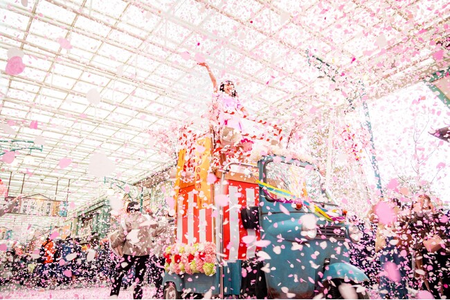 【西武園ゆうえんち】桜をイメージした紙吹雪が舞う「ブギウギ祭 桜吹雪フェス」約500本の桜が園内をピンク色に染め上げる!期間限定!抹茶を使った春を感じるお食事が楽しめる!『西武園ゆうえんちの春』