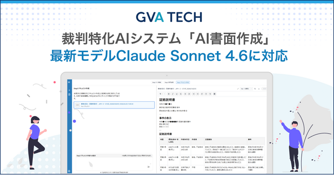 GVA TECH株式会社(本社:東京都渋谷区、代表取締役:山本 俊、以下GVA TECH)は、弁護士向け裁判特化AIシステム「AI書面作成」において、Anthropic社の最新AIモデル「Claude Sonnet 4.6」に対応したことをお知らせします。