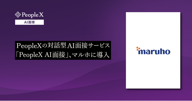 採用から活躍支援まで、AIで人事課題を解決する株式会社PeopleX(本社:東京都新宿区、代表取締役CEO:橘 大地、以下:当社)は、マルホ株式会社(本社:大阪府大阪市、代表取締役社長:杉田 淳)に、当社が提供する対話型AI面接サービス「PeopleX AI面接」を導入いただいたことをお知らせいたします。