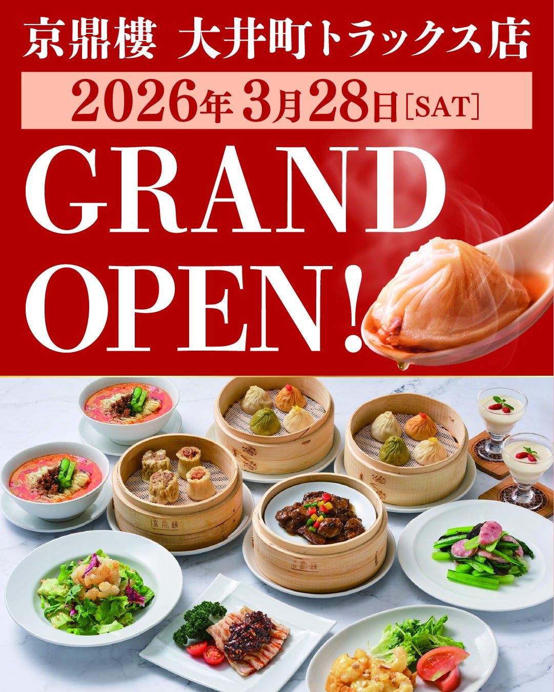 2026年3月28日(土)、台湾で行列のできる小籠包の名店 京鼎樓が大井町駅直結の新施設『OIMACHI TRACKS』にグランドオープンいたします。