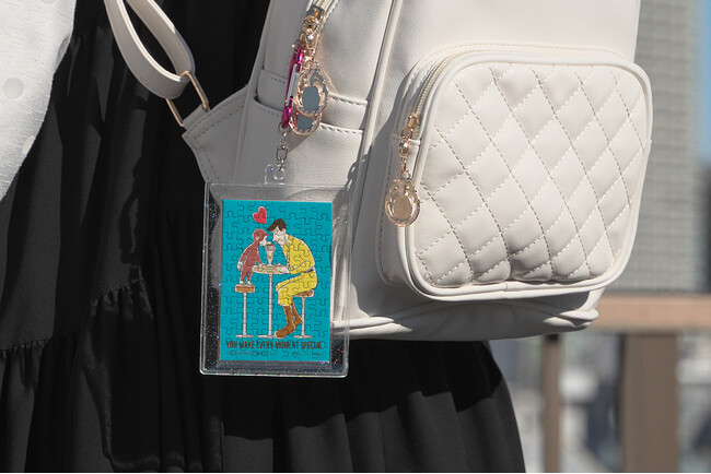 完成したら持ち歩こう!従来のジグソーパズルとは異なり、完成後は飾るだけでなく、別売りの専用ケースに入れて持ち歩くことが可能です。お気に入りのキャラクターのパズルを完成させて、一緒に街へ繰り出すという、これまでにない新しい推し活の形を提案します。