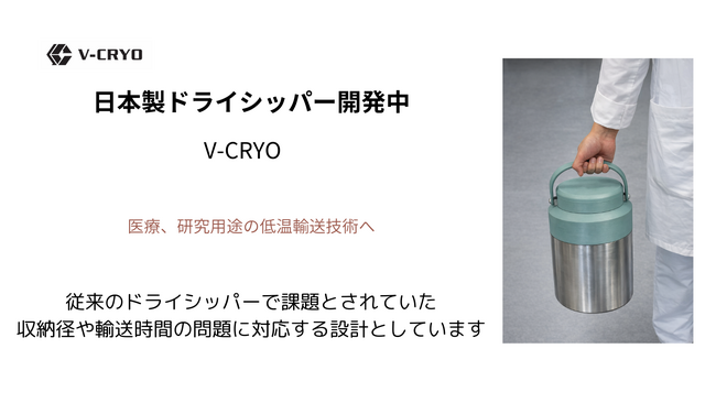株式会社真空断熱研究所(本社:三重県、代表取締役:中村圭介)は、真空断熱技術を活用した低温輸送容器「V-CRYO」の開発を2026年3月16日より開催される医療機器展示会「メディカルメッセ2026」にて参考展示を行います。本事業は三重県の「ヘルステック実証支援事業」に採択され、同制度支援のもと実施されました。現在、量産化を見据えた試作機の評価を進めています。