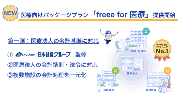 フリー株式会社(本社:東京都品川区、CEO:佐々木大輔、以下「freee」)は、医療向けパッケージプラン「freee for 医療」を本日3月9日より提供開始し、その第一弾として医療法人の会計基準に対応しました。