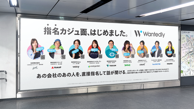 ウォンテッドリー株式会社(本社:東京都港区、代表取締役CEO:仲暁子、以下:ウォンテッドリー)は、2026年3月5日(木)に、求職者が話したい相手を指名してカジュアル面談にエントリーできる「指名カジュアル面談」の提供を開始しました。本機能のリリースを記念して、2026年3月9日(月)~3月15日(日)の期間において、渋谷駅構内に交通広告「指名カジュ面、はじめました。」を掲出します。
