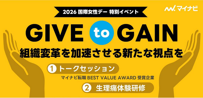 株式会社マイナビ(本社:東京都千代田区、代表取締役 社長執行役員:粟井俊介)が運営する総合転職情報サイト『マイナビ転職』(https://tenshoku.mynavi.jp/)と、従業員向け健康支援サービス『welltowa(ウェルトワ)』(https://saponet.mynavi.jp/pickup/welltowa/)は、【国際女性デー(3月8日)】に合わせて、「女性活躍」「組織成長」「働きやすさ」を軸に、企業が多様な人材が活躍できる職場づくりについて考える特別合同イベント「GIVE to GAIN」を3月6日(金)に初開催しました。