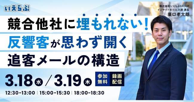 - 「競合他社に埋もれない! 反響客が思わず開く追客メールの構造」セミナー|いえらぶGROUP03/09 13:30