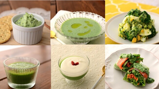 本研究で得られた知見を活かし、乳製品と組み合わせることで小松菜を生でおいしく食べられる健康レシピを、東京家政大学の学生と共同で開発しました。これらのレシピでは、本研究で確認された乳製品による好まれにくい味の抑制効果を活用し、小松菜本来の栄養価を残しながら、日常の食事に取り入れやすい工夫を行っています。