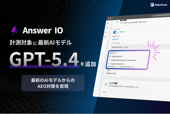 フィードフォース、AEOサービス「Answer IO」がOpenAIの最新モデル「GPT-5.4」に対応、エラー率33%削減・コンピュータ操作機能搭載の最新AIでのブランド可視性測定を実現