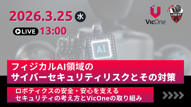 トレンドマイクロ株式会社(東京都新宿区、代表取締役社長 (CEO) エバ・チェン)の子会社で、自動車向けサイバーセキュリティ分野のリーディングカンパニーであるVicOne株式会社(ヴィックワン、東京都渋谷区、最高経営責任者(CEO)マックス・チェン)は、2026年3月25日(水)13時より、フィジカルAIおよびロボティクス領域における最新のサイバーセキュリティリスク動向と対策をテーマとしたウェビナーを開催します。