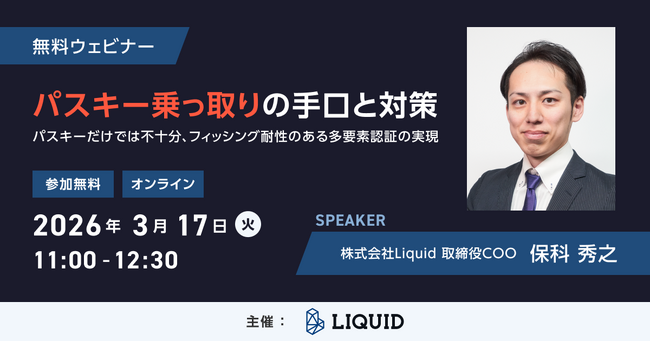 【パスキーだけでは不十分】日本の認証インフラを担うLiquid社が語る「パスキー乗っ取りの手口と対策」ウェビナー開催/無料/2026年3月17日(火)11:00~
