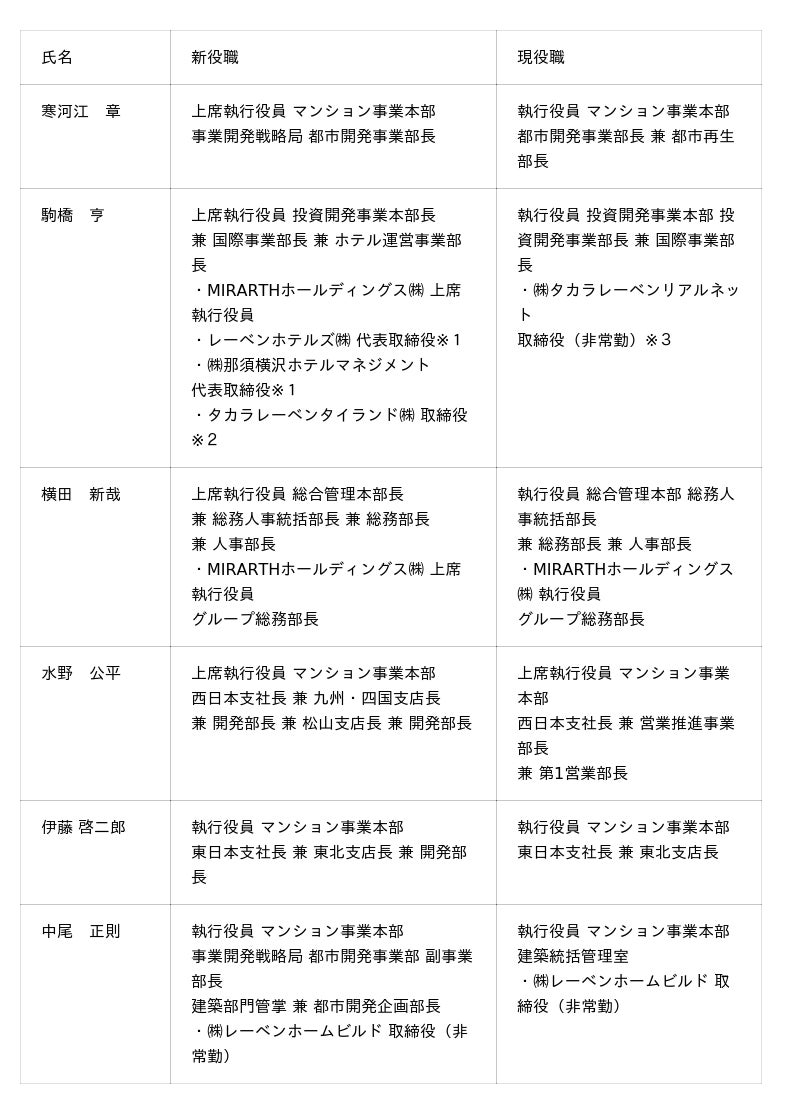 ※4.2026年6月開催予定の同社定時株主総会における選任決議をもって正式に就任予定。