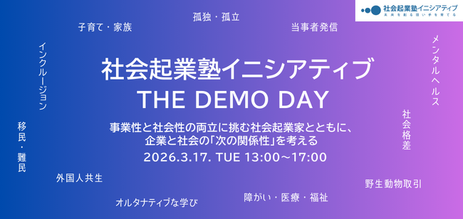 NPO法人ETIC.(エティック)は、2026年3月17日(火)に「2025年度 社会起業塾イニシアティブ DEMO DAY」を開催いたします。