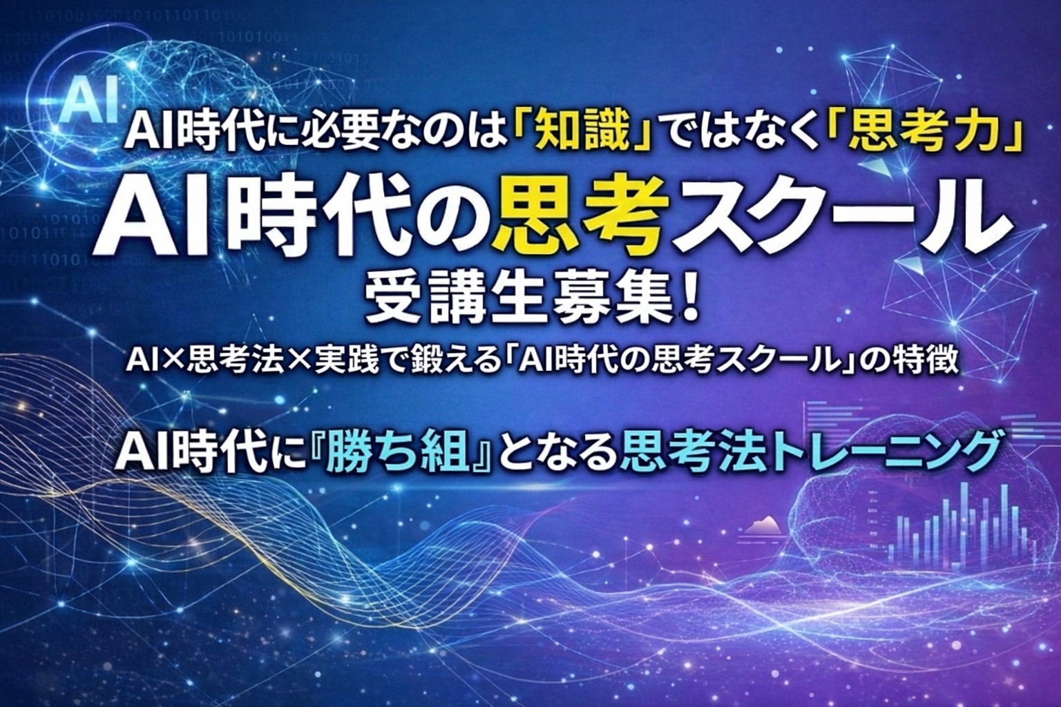 MENSA会員・ベストセラー著者が教える AI時代の思考力「AI思考スクール」受講生募集! 申し込み約1ヶ月間は無料。本当に役に立つと思われた方のみ有料でご継続ください