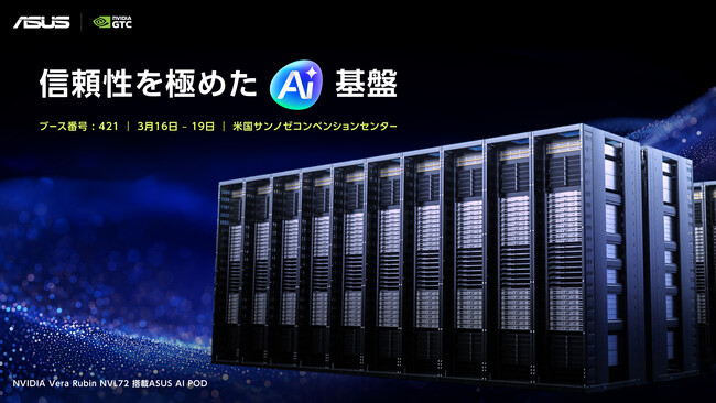 ASUSは、2026年3月16日から19日まで米国サンノゼで開催される「NVIDIA GTC 2026」に、ダイヤモンドスポンサー(ブース番号:#421)として参加します。「Trusted AI, Total Flexibility(信頼されるAI、自在な柔軟性)」をテーマに、次世代液冷エコシステムを展示いたします。