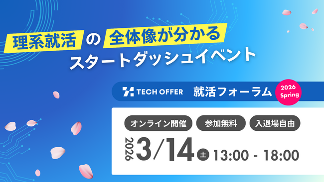 株式会社テックオーシャン(本社:東京都、代表取締役:上土 達哉)は、理系学生向け就活イベント「TECH OFFER 就活フォーラム2026 Spring」を2026年3月14日にオンラインで開催いたします。