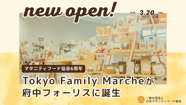 一般社団法人日本マタニティフード協会(所在地:神奈川県横浜市戸塚区矢部町321、代表理事:山本一樹)は、2026年3月20日(金・祝)、京王線府中駅直結の商業施設「ミッテン府中・専門店街フォーリス」に、マタニティ期から育児期の家族をおもな対象とした食のセレクトショップ「Tokyo Family Marche 府中店」をオープンいたします。