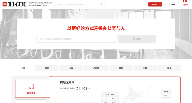 近年、日本市場への進出を検討する中国本土・台湾・香港・シンガポールなど中華圏企業の増加に伴い、オフィス情報を母国語で取得したいというニーズが高まっています。しかしながら日本国内において賃貸オフィス探しを中国語で可能なサービスがほとんど存在しないため、オフィスナビでは約1年の期間をかけて自社内で開発し、オフィス検索サイト中国語版を実現させました。