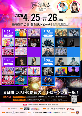 沖縄・豊崎海浜公園ちゅらSUNビーチを舞台に、音楽・ダンス・カルチャーが交差するミュージックフェス「GIRLS GROOVE INNOVATION 2026」が、2026年4月25日(土)~26日(日)の2日間にわたり開催されます。