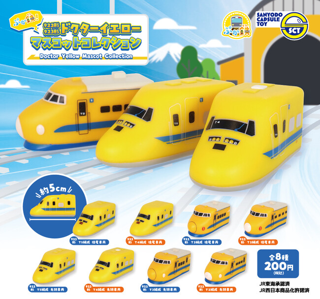 縁日商材をはじめとする玩具等の製造販売を行う株式会社三洋堂(本社:愛知県岩倉市、代表取締役:折小野 嘉輝)は、カプセルトイの新商品『ぷか鉄!922形923形ドクターイエローマスコットコレクション』全8種を、2026年3月16日(月)より全国のカプセルトイ自動販売機で1回200円(税込)にて順次発売を開始いたします。