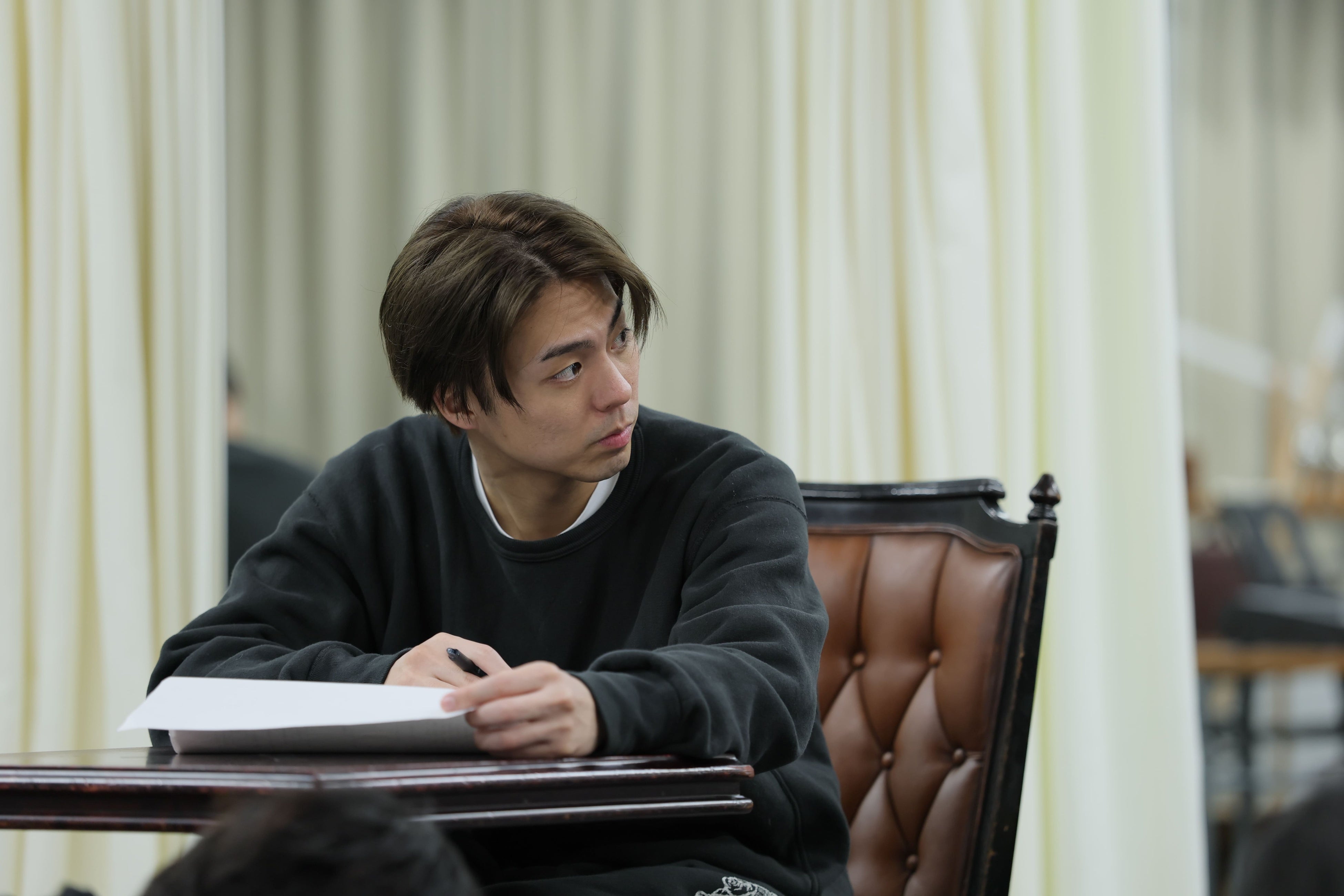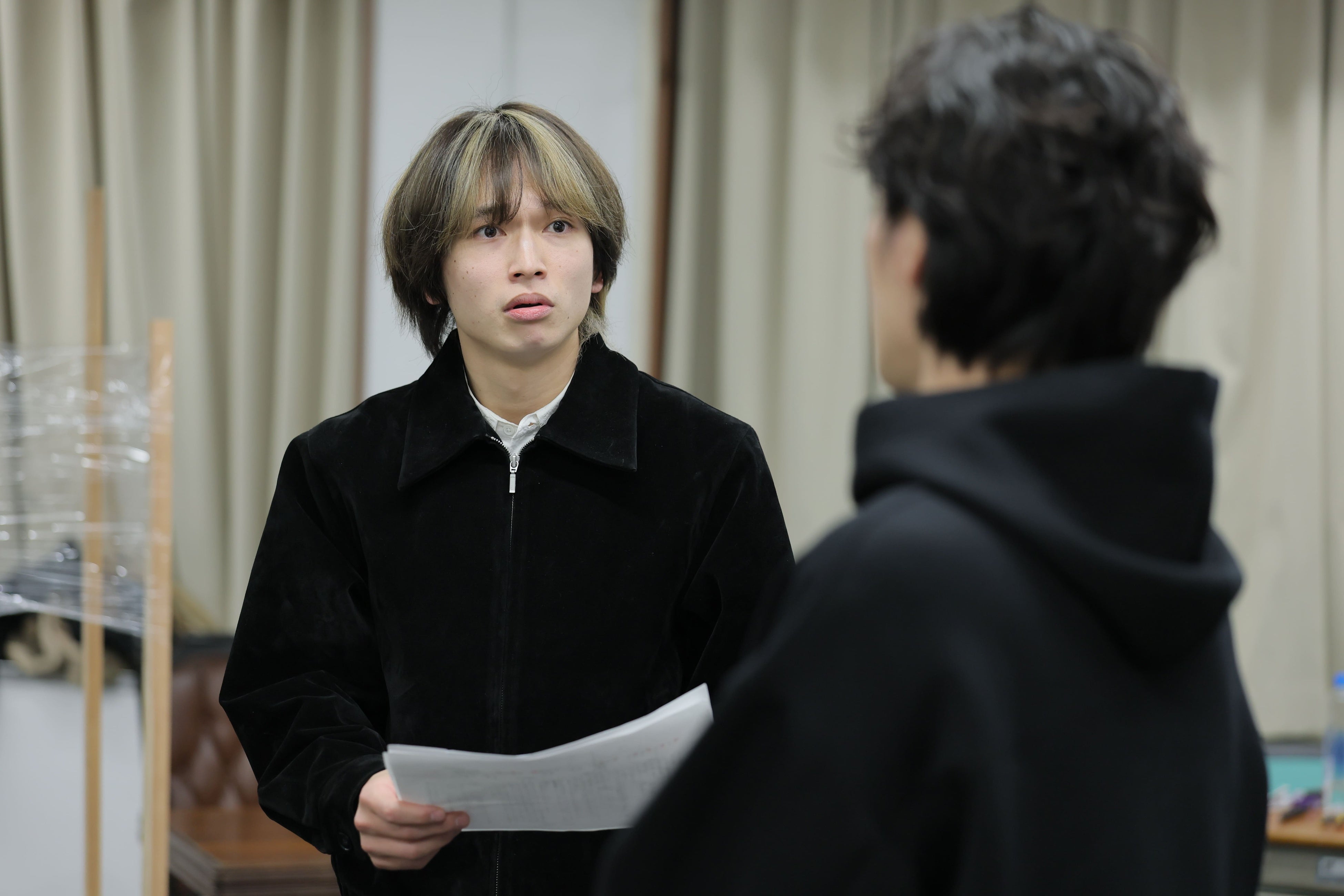 そんなクリエイティブな現場で、多様なバックグラウンドを持つキャスト陣の中心となっていたのはやはり主人公・浩太を演じる水田航生と小野塚勇人。物語の構造と登場人物の役割を俯瞰しながら「ここで相槌を打つ人を変えたほうがコメディの様式になるのでは」「今の言い回しだと、ニュアンスが捉えづらくなる」と積極的に意見を出していました。淳一役の陳内 将は抜群の安定感で“綱引き”をさりげなく土台から支えていて、鈴木康介はあえて受けに回ることで、淳一として浩太と渉に振り回されるのを楽しんでいるよう。渉役の瀧澤 翼は大胆なアプローチで場をかき乱し、鈴木曉はまさしく体当たりでトリッキーな人物像を体現。元シャンソン歌手・亜紀を演じる珠城りょうと久城あすは、さすがのカリスマ性とチャーミングさで華やかな彩りを添え、物語を一気に進めるだけの説得力があります。