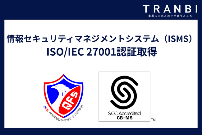 株式会社トランビ(本社:東京都港区、代表取締役:高橋聡、以下「当社」)は、情報セキュリティマネジメントシステム(ISMS)の国際規格である ISO/IEC 27001:2022 の認証を、2026年3月に取得いたしましたことをお知らせいたします。認証機関は 株式会社QFSjapan、対象範囲はM&A に関するプラットフォームの企画、開発、運用及び保守に関わる業務です。