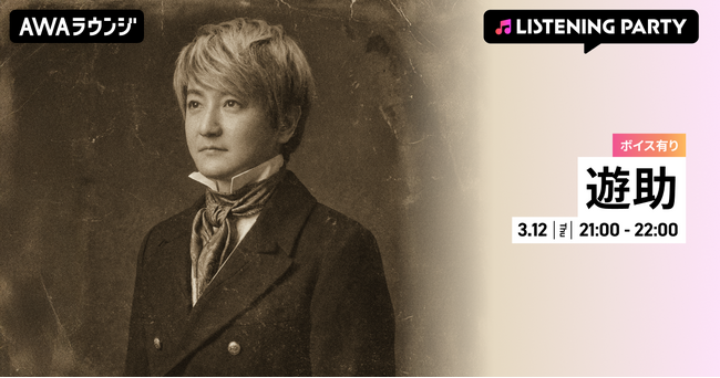 AWA株式会社(本社:東京都港区、代表取締役CEO:冨樫晃己)が運営する、サブスクリプション型(定額制)音楽ストリーミングサービス「AWA(アワ)」は、2026年3月12日(木) 21:00より、無料で誰でも参加できるオンライン空間「ラウンジ」で、遊助を特集したリスニングパーティーを開催いたします。