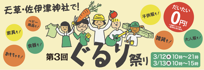 株式会社メイキップ(本社:東京都新宿区、代表取締役:柄本 真吾、以下「メイキップ」)は、3月12日の「unisizeの日」に合わせて、3月12日(木)・3月13日(金)の2日間、熊本県天草市の佐伊津神社(さいつじんじゃ)にて「第3回 ぐるり祭り」を開催いたします。「ぐるり祭り」は、サイズが合わなくなった衣類や小物を捨てるのではなく持ち寄り、次の誰かへつなげる物々交換イベントで、より持続可能な社会の実現を目指す取り組みです。
